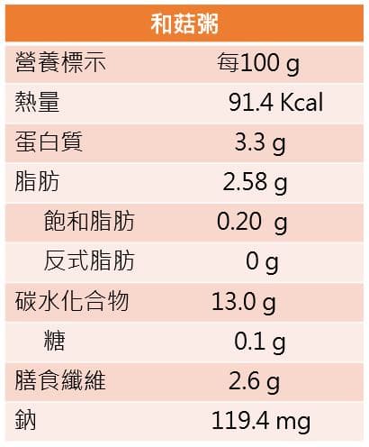 菇類是很好的鮮味來源,更多種食用菇類入粥,風味自然更好,而不同的菇類有不同的質地,讓和菇粥口感層次更加豐富。一碗和菇粥就能補充超過50種的多醣體、最完整的礦物質、滿滿的膳食纖維、豐富的維生素B群、葉酸、維生素D等,不用濃縮、提煉就完勝市售所有機能性營養補充品,真的是最天然的養生捷徑。