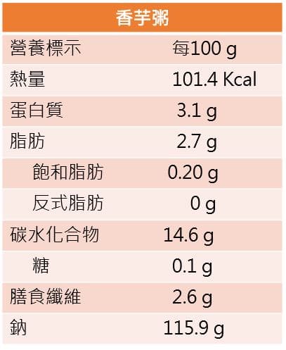香芋粥營養標示